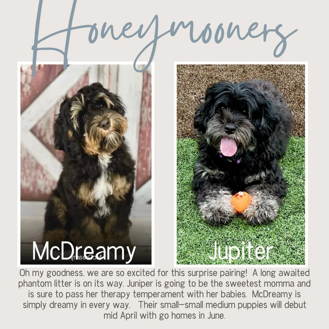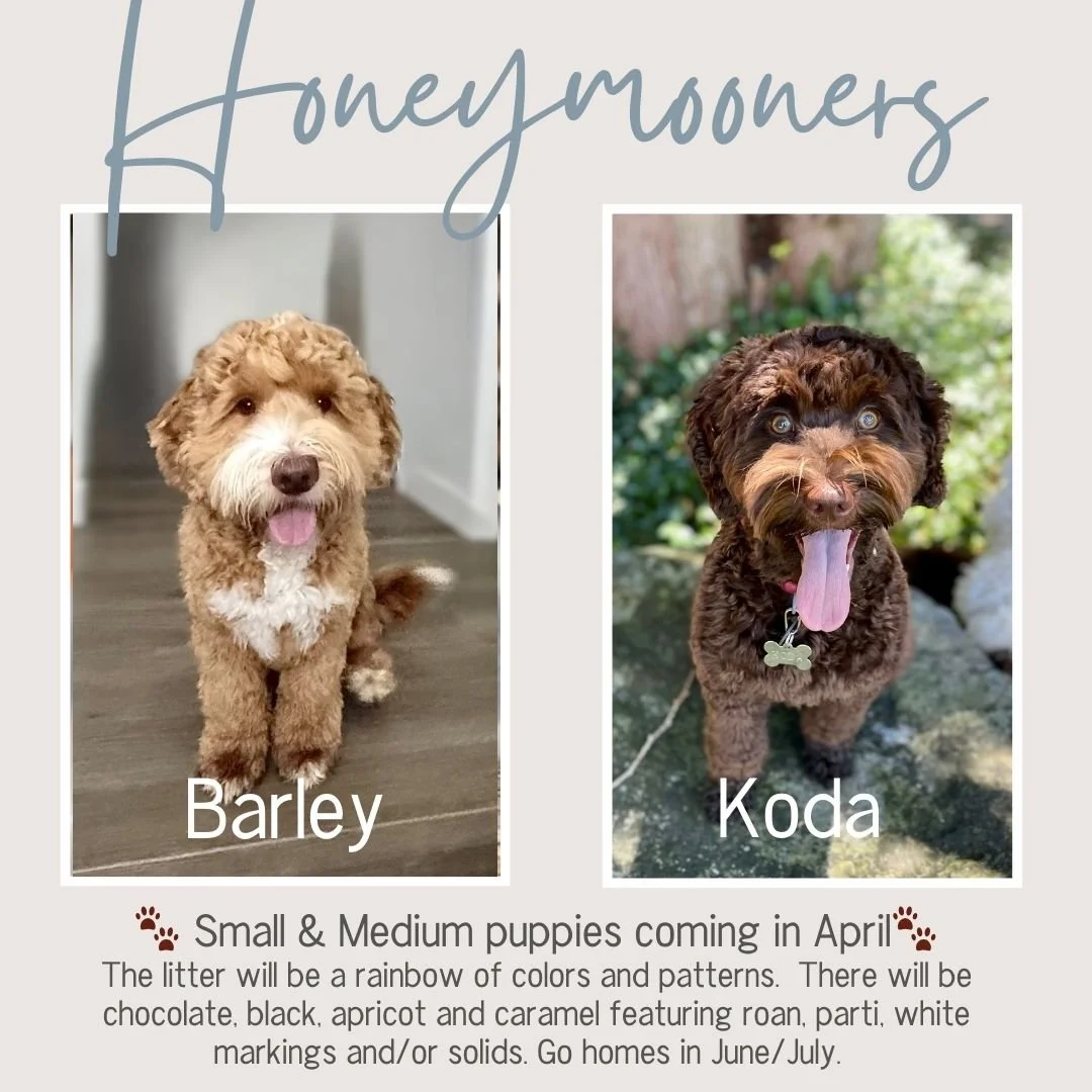 These small/medium puppies are going to have the softest coats and temperaments too. Sure to be the perfect lil’ snuggle puppy for your family this spring. Puppies will be a beautiful rainbow of colors: black, chocolate, caramel and apricot featuring roans, partis, white markings and solids.